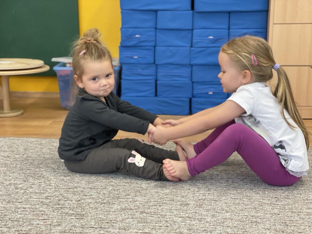 Každé ráno po úklidu hraček se scházíme v kruhu. Přivítáme se pomocí duhové básničky, zacvičíme si, zazpíváme a společně se připravíme na nový den.